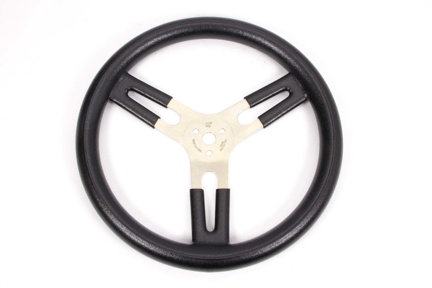 Product Description Steering Wheel - 15 in Diameter - Flat - 3-Spoke - Black Rubberized Grip - Aluminum - Brushed - Each