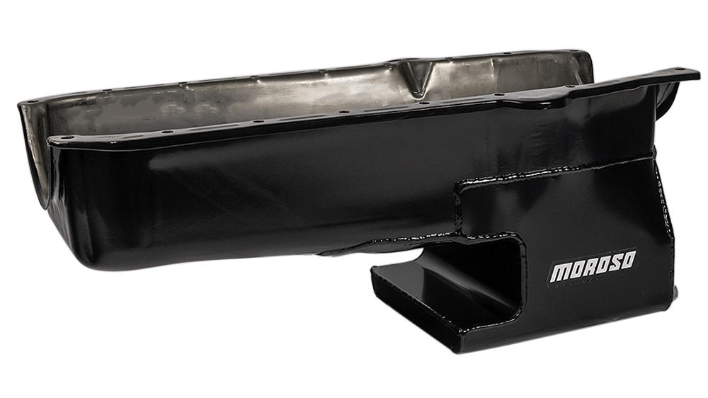 Product Description Engine Oil Pan - Street / Strip - Rear Sump - 6 qt - 9 in Deep - Steel - Black Powder Coat - 1-Piece Seal - Small Block Chevy - Each
