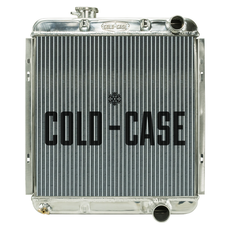 Product Description Radiator - 19.6 in W x 21 in H x 3 in D - Passenger Side Inlet - Passenger Side Outlet - Aluminum - Polished - Manual - Small Block Ford - Ford Mustang 1964-66 - Each