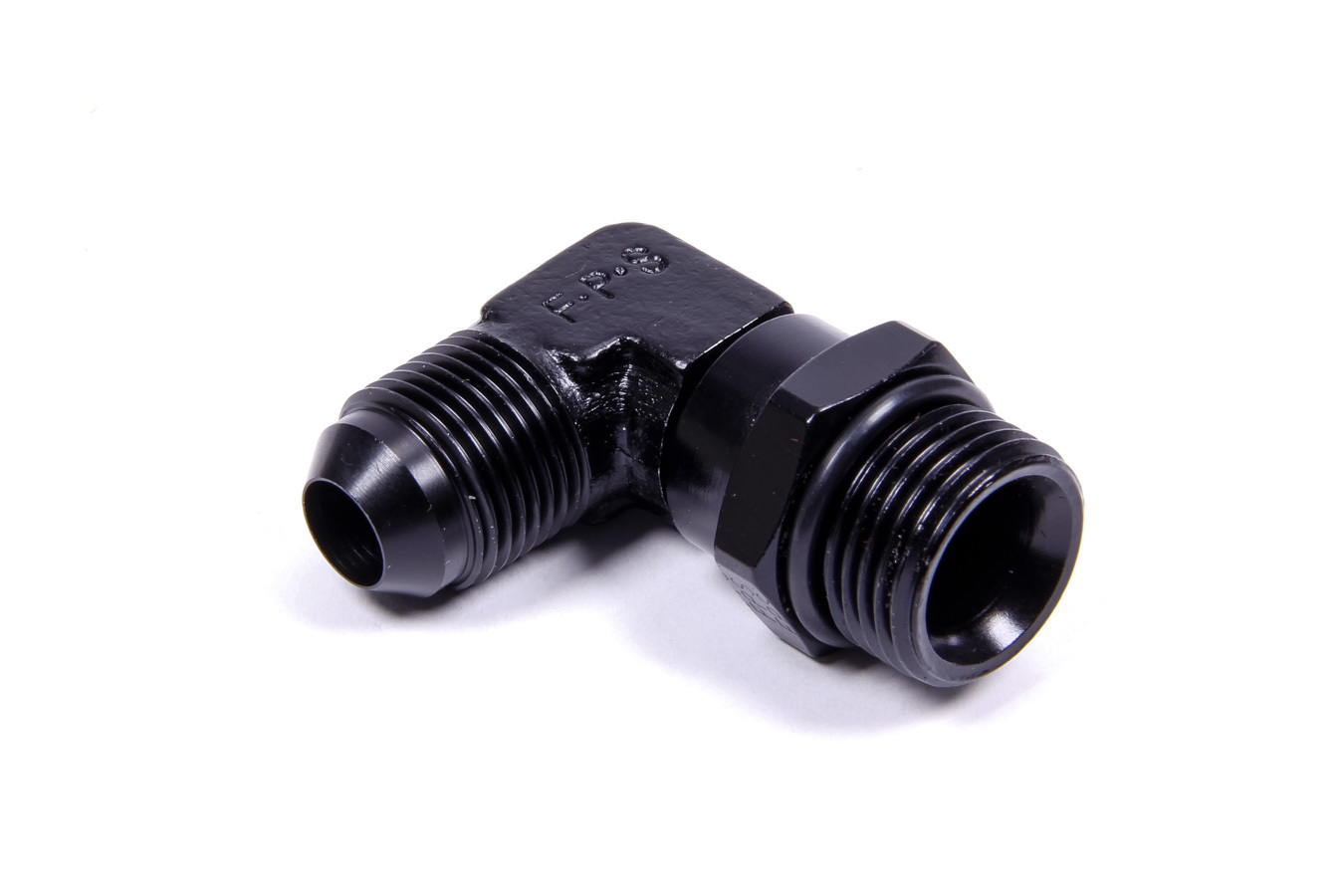Product Description Fitting - Adapter - 90 Degree - 8 AN Male to 10 AN Male O-Ring Swivel - Aluminum - Black Anodized - Each