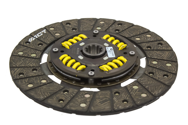 3000904 is a performance street disc and the most popular disc purchased. It features premium organic materials with high copper content for better heat transfer. Performance street discs allow for quicker shifting and smooth engagement. These discs feature a reduced marcel for faster shift action to complement ACT pressure plates. ACT spring-centered assemblies use bushings and cone springs similar to factory clutch discs. This creates frictional dampening, which improves clutch life and reduces noise. Quiet operation with increased strength and reliability.