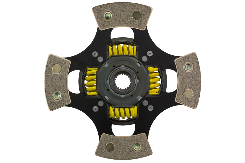 Aggressive engagement, quick shifts, OE to mild gear rattle; Premium ceramic friction materials provide moderate wear rates and high heat tolerance; Utilizes wraparound spring windows, thicker retainer stampings and a heat-treated, spring steel drive plate to provide support, reduce stress concentrations and increase strength and reliability; Recommended for race use only; High burst strength and holds 28% more torque than typical organic materials