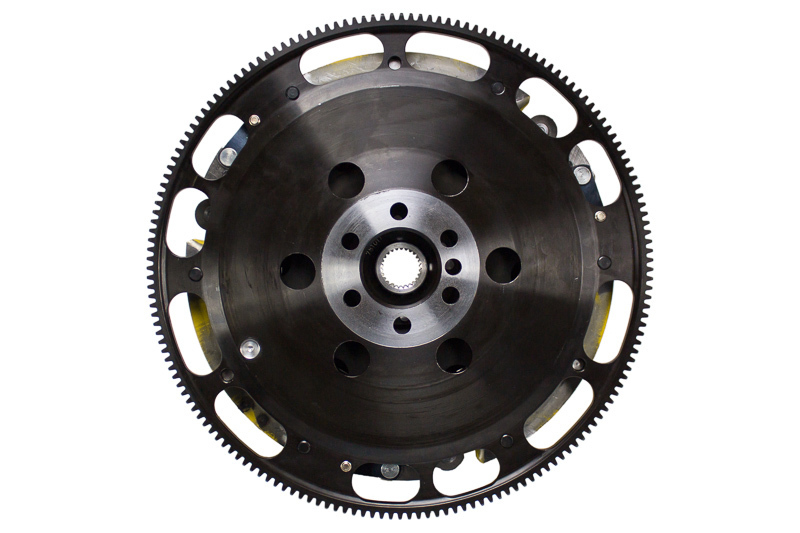 T1R-G01 twin disc kit offers twice the number of disc surfaces for better wear, heat capacity and long life compared to single disc kits. These kits use a proprietary Positive Lift Floater System design, which results in quiet operation with no floater rattle and no posts to wear. ACT twin disc kits endure an exclusive four-stage, heat treating process performed on all diaphragms. The ACT twin disc features the ability to adjust for disc wear and provides equal disengagement for discs. ACT's 6-pad rigid race discs are made with high quality, ceramic friction materials. The chrome-moly hub is heat-treated for strength and durability. The lightweight, rigid design allows for quicker shifts and trouble-free service. All ACT twin disc kits include a CNC-machined and dynamically balanced flywheel to ensure trouble-free installation and operation. ACT twin disc kits include a pressure plate, two discs, a floater, flywheel and alignment tool. Some kits may include a pilot bearing and release bearing.