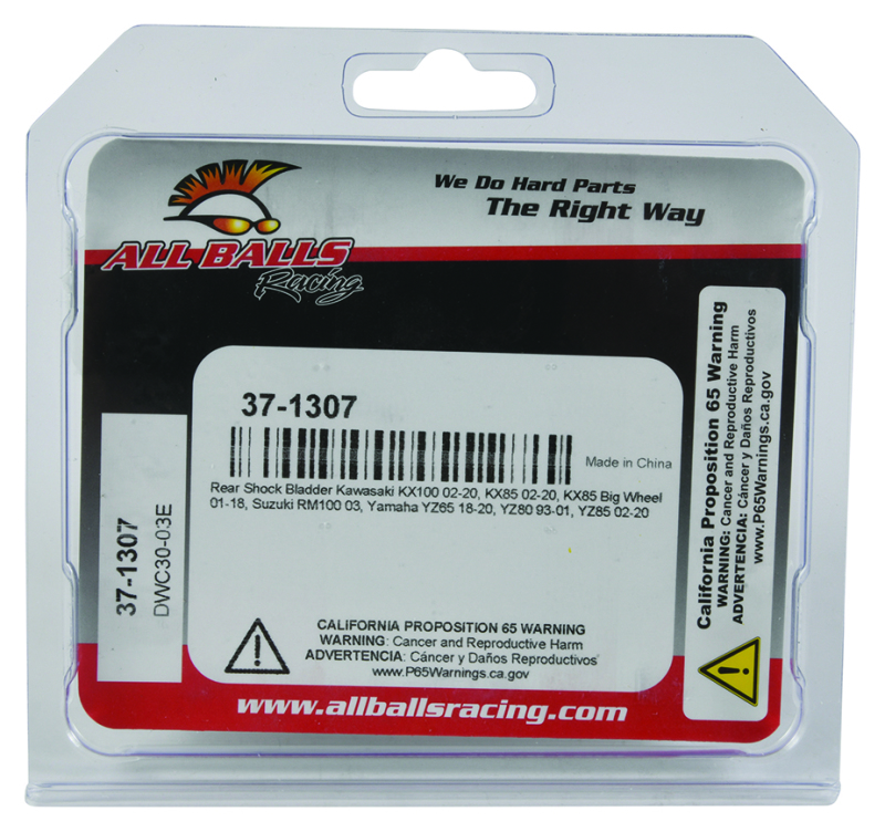 Product Description Specifications All Balls Racing 02-23 Kawasaki KX85 Rear Shock Bladder MPN: 37-1307 Clearance Item: N