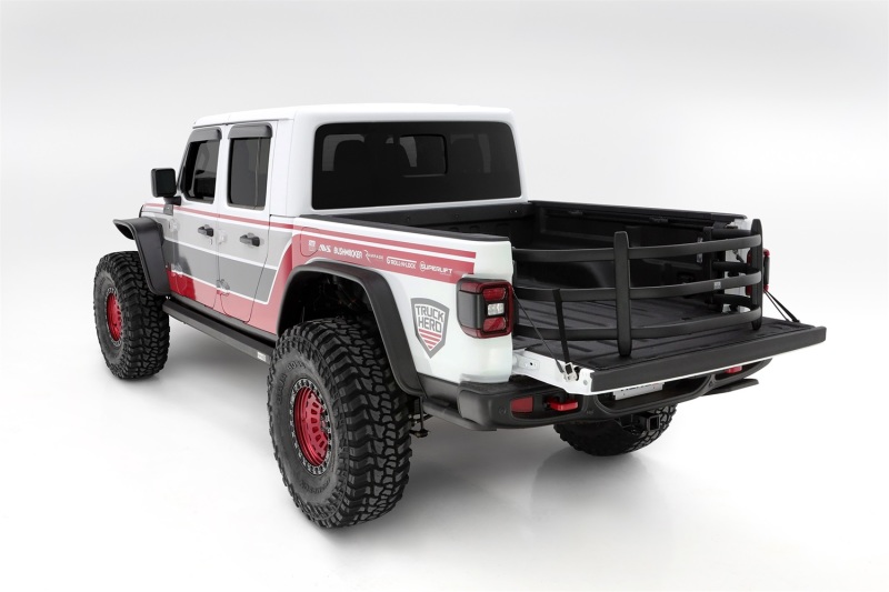 V-shape design is the perfect mix of form and function that keeps your gear secure. Provides the extra clearance needed when used with some tonneau cover rails. Flip it out with the tailgate open to gain up to 2-feet of enclosed cargo area. Flip it inside and close the tailgate to keep tools and smaller cargo contained in the truck bed.