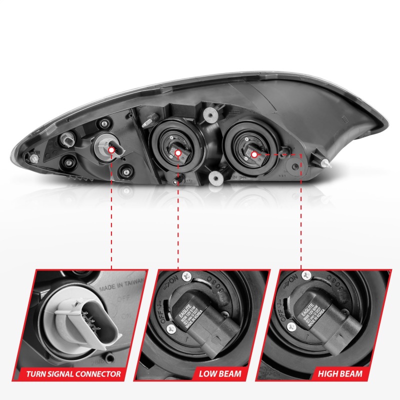 Crystal Headlight Set, Clear Lens, Black Housing, 2 pc., Not For Use w/Sealed Beam Headlights, . Guaranteed To Improve Your Vehicles Appearance. Rigorously Tested For Fit And Function. Simple Plug And Play. No Modifications Required. Easy Installation Using Common Hand Tools. Uses Stock Mounting Locations And Hardware. D.O.T. Compliant To S.A.E. Standards. Sold As A Pair.