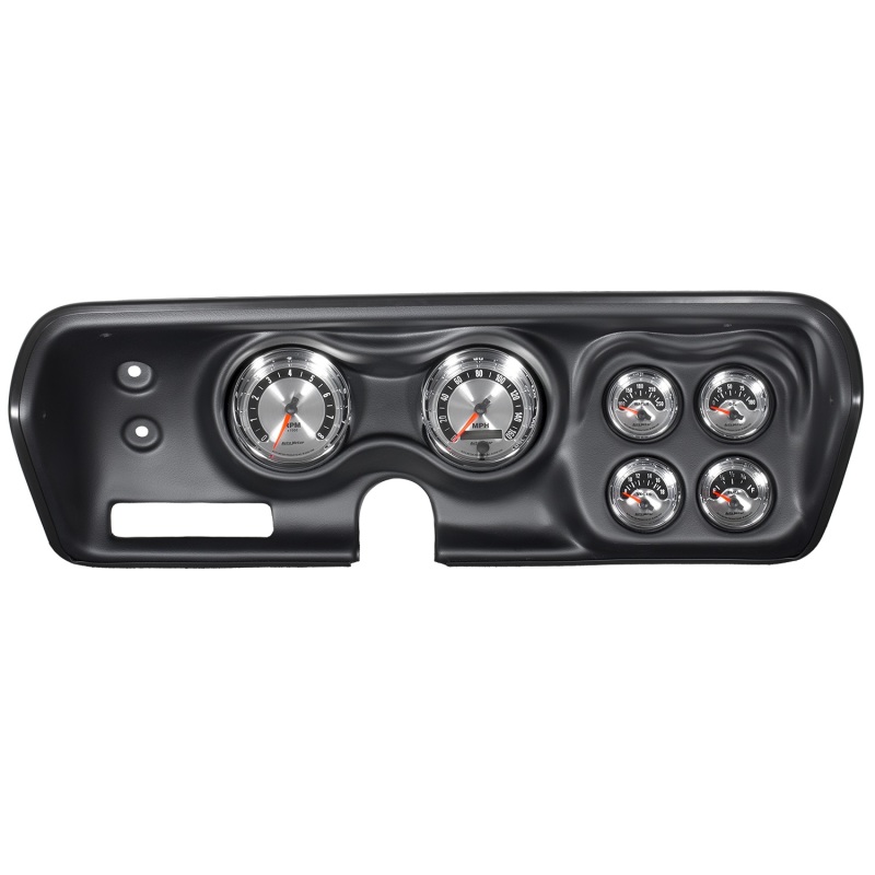 Upgrade your muscle car or classic truck with an AutoMeter direct-fit American Muscle dash kit. Each easy-to-install package includes a durable replacement dash panel and six iconic American Muscle series gauges featuring spun metal dials and bright chrome bezels. White LED through dial lighting ensures optimal visibility during low-light conditions while our easy, no fab installation allows you to preserve the original interior of your classic ride.