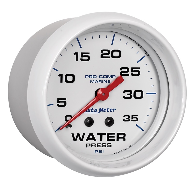From high banked ovals to Saturday night 1/4 miles to high-performance boats, knowing that you?ve got proper cooling system pressure is critical in any application. AutoMeter?s Mechanical Water Pressure Gauge utilizes the most precise bourdon tube meter movement on the market to deliver accuracy and durability you won?t find anywhere else. An 1/8? NPT connection on the back makes for easy installation and nylon lines and fittings are available separately.