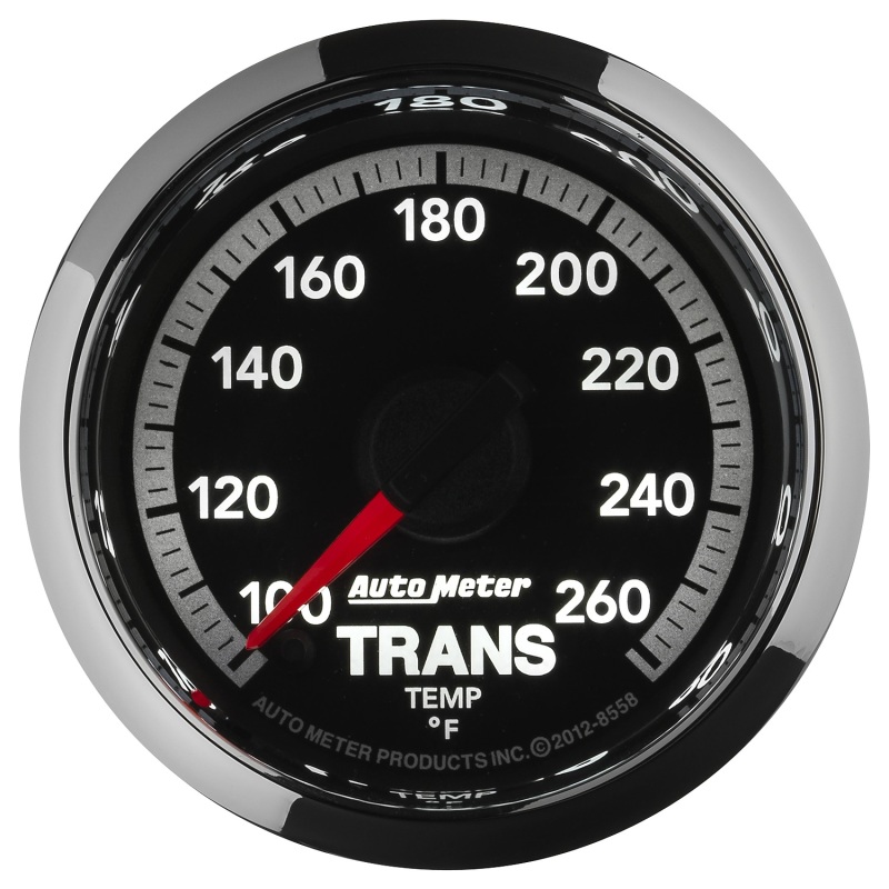 Transmission fluid temperature is the single biggest contributing factor to the lifespan of your automatic transmission. Having an accurate, realtime measurement allows you to know when to downshift or when to take your foot out of it. Whether you?re towing or simply trying to harness the power of a built or boosted motor, AutoMeter?s Digital Stepper Motor Trans Temp Gauge will give you the most accurate possible measurement for the exact temp of your trans fluid. AutoMeter?s most advanced 1/8? NPT temperature transducer is included as well as a direct plug in wiring harness for ease of installation. An optional trans cooler line manifold is available for another easy installation option.