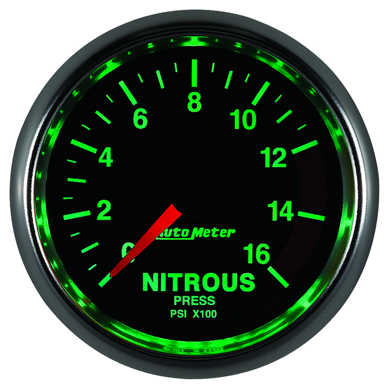 Proper Nitrous Pressure Is The Difference Between Extracting Maximum Power From Your Engine And Finishing Second. Autometers Digital Stepper Motor Nitrous Pressure Gauge Uses Our Advanced 1/8" Npt Solid State Pressure Transducer To Give You The Most Precise Possible Reading Of Your System Pressure ,Up To 1600 Psi. Built With The Accuracy And Durability Required By The Professional Racer, There Simply Isnt A Better Possible Solution. A Direct Plug In Wiring Harness Is Included For Ease Of Installation And Data Logging Is Available Thanks To A .5 - 4.5V Analog Output.