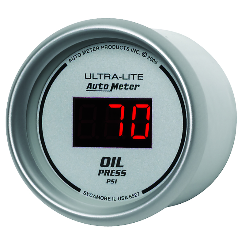 Product Description Specifications Oil Pressure Gauge - Ultra-Lite - 0-100 psi - Electric - Digital - 2-1/16 in Diameter - Silver Face - Each MPN: 6527 Clearance Item: N