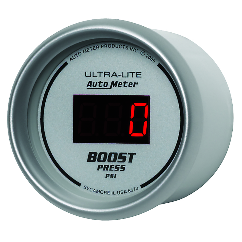 An ultra high precision digital gauge engineered for diesel applications but also perfect on higher boost gasoline engines. Using AutoMeter?s advanced 1/8? NPT solid state pressure transducer, this gauge provides the ultimate in accuracy for forced induction applications producing from 5-60 psi. A direct plug in wiring harness is included for ease of installation. Digital Boost/Vacuum gauges are also available for gasoline or lower boost applications.