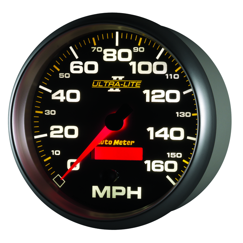 Product Description Specifications Speedometer - Ultra-Lite II - 160 MPH - Electric - Analog - 5 in Diameter - Programmable - Silver Face - Each MPN: 4989 Clearance Item: N