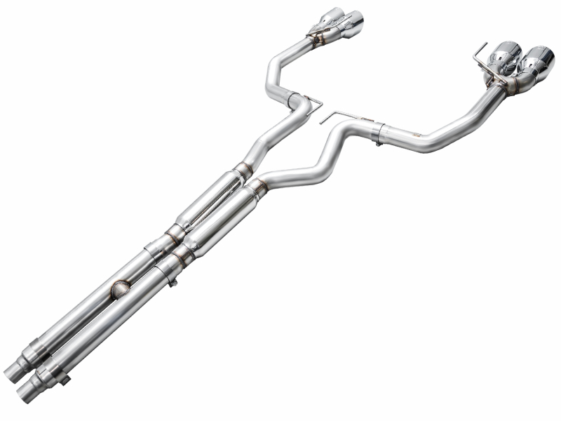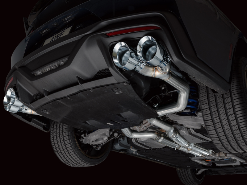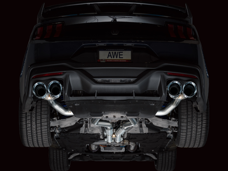 Presenting the AWE Cat Back Exhaust for the Ford S650 Mustang Darkhorse. You’re looking at the Track Edition - the rowdiest version of the lineup. The AWE Track Edition has minimal filter in the rear via dual straight lengths of 3” stainless steel - it’s light, it’s loud (in & out), it’s cost-effective, and it isn’t for the faint of heart–you’ve been warned (and for this reason, the Track Edition can not be returned for sound reasons!). Full 3” & modular, the Track Edition features a full 3” design with modular, slip-fit inlet adapters for perfect mating with the factory headers, while facilitating a dual 3” connection for drivers looking to get spicier up stream one day (or now). And thanks to the precision AWE H-pipe, your 5.0L V8 will produce a deep, rich muscle tone with minimal wrasp (unlike an X-pipe). The Track Edition features straight-through bullet-style resonators in the mid pipes to further defeat wrasp, which becomes especially helpful should you upgrade your headers. When it comes to power to the pavement, we’re looking at dyno-verified gains of +8 hp and +8 lb-ft of torque at the wheels on an otherwise stock vehicle. The full AWE Track Edition is 100% emission-friendly, not interfering with any factory emissions equipment. Bringing up the rear are quad 5” big boys: slash-cut, double-walled, and individually adjustable tips, available in chrome silver or diamond black. Made in PA, USA: engineered, designed, and manufactured in-house at AWE using US-sourced .065”-wall T304L stainless steel. All this plus 50 state emissions compliance, AWE’s Fitment Guarantee, No Check Engine Light Guarantee, and the AWE Lifetime Warranty.