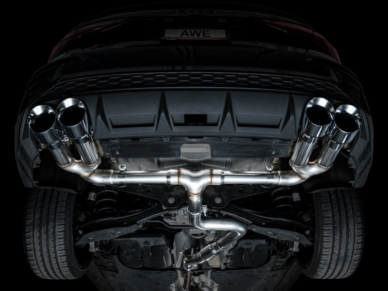 The Track Edition features a 3” inlet complete with an adapter to accommodate the factory downpipe perfectly while leaving an open 3” connection. Featuring minimal filter with one bullet resonator in the center, the Track Edition provides a full-bodied soundtrack at all times.. This configuration provides the best ratio of interior refinement and exterior rumble on the market. No valves needed. Switch driving modes and the exhaust will render the same result as a vavled exhaust. It's the do-it-all exhaust for every day drivers. Comes complete with quad 4.5" slash-cut, double-walled tips in chrome silver. The AWE Track Edition for the 8Y S3 is made in the USA and backed by AWE’s Fitment Guarantee, 50 state emissions compliance, No Check Engine Light Guarantee, and the AWE Lifetime Warranty.