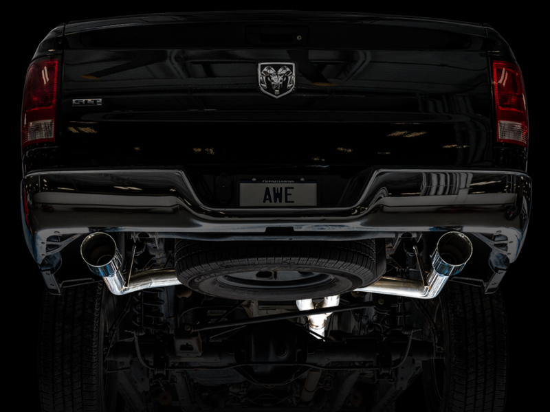 The 0FG is a 3” T304L stainless steel Cat Back configuration featuring AWE’s patented drone-canceling 180 Technology®. Together, combined with precision fitment, class-leading rigidity, and tailored tip options for all bumper variations, you're looking at the Best Sounding Exhaust on the Planet™ for the 4th Gen RAM. American-sourced T304L stainless steel with a wall thickness of .065” runs smoothly from front to back, connecting right after the factory emissions equipment. After exiting the 180 Technology® resonator, the exhaust splits into dual 3” piping up to the tips. Perfect tone, compliments of AWE 180 Technology®. Keeping the aggression at the rear of the RAM, and out of the cabin, is AWE’s patented drone-canceling solution, 180 Technology®. This system is the dual rear-exit, 5” double-walled straight-cut tip'd system, in Chrome Silver. And check this out: the AWE BashGuard comes standard with this system, and is designed to provide drivers who frequently crawl rough terrain peace of mind with a simple conversion that shortens the exhaust, so it ends up and over the rear axle. Just unbolt the rear section of the exhaust, and pop the included Bash Guard in its place, and you've got protection from rocks and the occasional comet. Tips when you want ‘em, protection when you don't. Easy. The AWE 0FG Dual Rear Exit Cat Back Exhaust is the last exhaust you'll ever need for your RAM. Guaranteed for life.