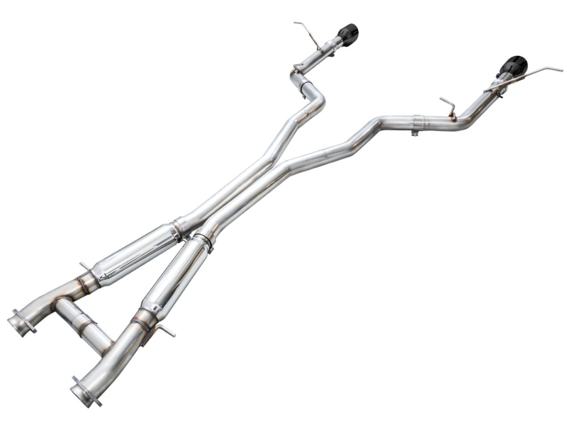 For those who like it raw and rowdy, the Track Edition is for you. The Track Edition features an integrated H-pipe followed by bullet-style resonators in the mid pipes. Beyond them lies unfiltered, dual 3" T304L that runs all the way back to dual slash-cut, double-walled tips, available in chrome silver or diamond black. All this plus 50 state emissions compliance, AWE’s Fitment Guarantee, No Check Engine Light Guarantee, and the AWE Lifetime Warranty. This version is known to get (really) rowdy in mid-range acceleration and deceleration and may be too much for many. Due to this reason, AWE Track Edition Exhausts cannot be returned based on sound preference. You’ve been warned!