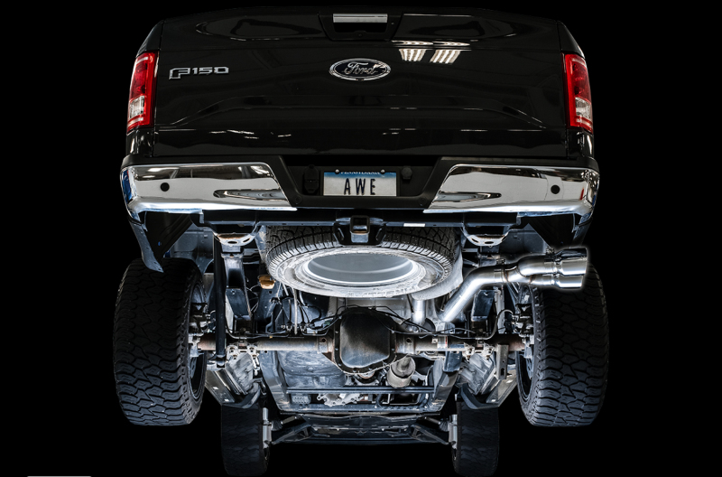 The finest exhaust line up for the ‘15+ F-150 V8. Modularity, precision fitment, drone-canceling technology, and the finest materials render a do-it-all exhaust lineup built for the world’s favorite truck. All proudly manufactured in the USA. The AWE 0FG Exhaust Suite for the ‘15+ F-150 V8, available now. The 0FG Exhaust is a rugged 3” T304L stainless steel "mid pipe-back" configuration with a 100% straight-through design for optimal flow. Featuring AWE’s proprietary, patented drone-canceling solution, 180 Technology®, the 0FG Exhaust delivers a unique dose of refined aggression out of your F-150, without any drone at cruising speeds. Regardless of low or high gear, the 0FG Exhaust will be on the top of your playlist. The AWE Single Exit 0FG Exhaust features two 4.5” slash-cut tips that reside behind the rear passenger-side fender. With adjustment at the tip outlet, drivers can adjust the angle of the tips to their liking (we like them parallel to the ground ourselves). This version of the 0FG Exhaust comes with Chrome Silver tips, with the AWE stamp of approval. Each tip is individually adjustable, allowing bumper depth to be set according to your personal taste. Rugged, rowdy, radical.