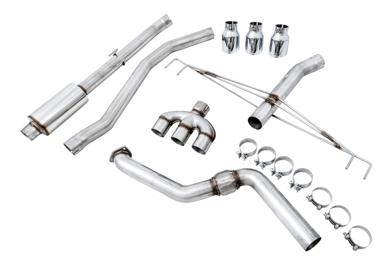 For those who like it raw and rowdy, the Track Edition is for you. The Track Edition shares the same integrated front pipe, bespoke mid pipe resonator, and precision engineering as its Touring Edition counterpart, minus AWE’s patented drone-canceling solution, 180 Technology®. In place of the 180 Technology® resonator in the rear lies a Track Edition straight section. As a result, this version is known to get (really) rowdy in mid-range acceleration and deceleration, and may be too much for many. And you can't return it if its too loud (but you can convert it to a Touring Edition). You've been warned. Running the Track Edition and think it's too loud? AWE made it easy to switch to a Touring Edition with the engineered Conversion Kit to tone it down. You're never stuck if you decide at a later date to change your volume. Important notes: The exhausts includes a 3” front pipe. This front pipe is integrated into the design of the exhausts. AWE exhausts are not designed to mate with other aftermarket front pipes. Downpipes, on the other hand, should work just fine (so long as they work with the factory-style flange). We decided to reuse the factory-style flange and gasket for reliability and long-term performance. The factory's double-layer steel gasket design is vastly superior to any aftermarket flat gasket. This design allows for the gasket to be fully captured by the machined groove in the flange, eliminating any possibility of blowout or deterioration over long-term use. Additionally, it is fully serviceable, unlike a flat gasket that can stick to the mating flanges and tear upon removal. Each CTR exhaust comes complete with 4.5” double-walled, slash-cut tips available in Chrome Silver or Diamond Black, and feature a stamped AWE logo. All tips are individually adjustable, allowing depth into the bumper to be set according to personal taste.VTEC. Turbo. AWE. Presenting the AWE Track Edition Exhaust for the Honda FK8 Civic Type R.