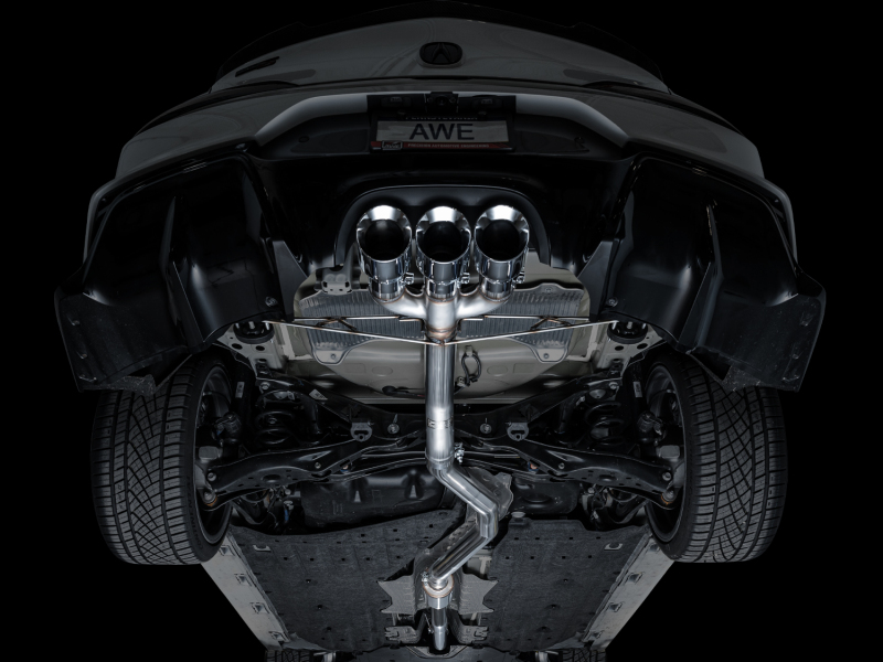 For those who like it raw and rowdy, the Track Edition for the DE5 is for you. The Track Edition shares the same integrated front pipe, robust mid pipe resonator, and precision engineering as its Touring Edition counterpart, minus AWE’s patented drone-canceling 180 Technology® resonator in the rear. In place of the 180 Technology® resonator is a Track Edition straight section. As a result, this version is known to get rowdy in mid-range acceleration/deceleration and cruising, and may be too much for some - and for this reason, the Track Edition can not be returned for sound reasons. You’ve been warned–especially with a downpipe! Each Track Edition exhaust for the DE5 comes complete with three 4.5” double-walled, slash-cut tips available in chrome silver or diamond black, and features a stamped AWE logo. All tips are individually adjustable, allowing depth into the bumper to be set according to personal taste. The Track Edition comes complete with 50 state emissions compliance, AWE’s Fitment Guarantee, No Check Engine Light Guarantee, and the AWE Lifetime Warranty.