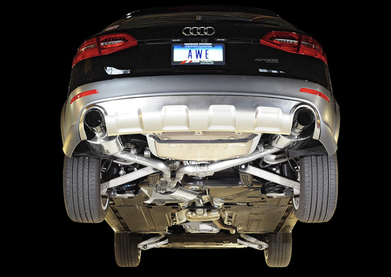The AWE Audi allroad Touring Edition Exhaust the AWE Audi allroad Touring Edition Exhaust rises to the standard of all AWE Performance technology. AWE Research and Development has yielded an exhaust that is remarkably civil while idling / part throttle cruising, but unleashed at full throttle it produces what some have called a "war-cry wail." Our exhausts are like bespoke suits: each is hand-made utilizing only the finest materials, and they command respect while never losing composure…Sophisticated, refined, and powerful, all in one package. Perfect for the allroad. Highlights The allroad’s stock exhaust system is full of crimped tubing that hurts exhaust flow and robs horsepower. The AWE Audi allroad Touring Edition Exhaust was designed using CAD modeling software to produce smooth, gradual bends, specifically engineered to eliminate any interruption to the flow of exhaust gasses. AWE’s improvements to the exhaust path result in gains of 8-9 horsepower and 6-7 lb. ft of torque at the crank. In addition to achieved power gains, replacing the large, restrictive factory mufflers also unlocks the tone of the 2.0T engine. Our exhaust systems give the 2.0T a civilized, more melodious voice, with specific attention paid to low rpm situations at part throttle.