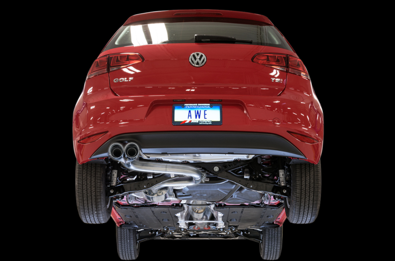Engineered to perfection, the Touring Edition Exhaust is designed to give your Golf 1.8T a more aggressive, but comfortable tone that perfectly builds upon the Golf’s demeanor. The Touring Edition Exhaust features a resonated front section and replaces the large stock rear muffler with a centrally-located, straight-through muffler. When it comes to tips, the Touring Edition for the 1.8T finishes off with 90mm slash cut tips, featuring the AWE logo, so they know what team you're on. All tips are individually adjustable, allowing depth into the bumper to be set according to personal taste. They're also double walled to ensure a mirror finish - even under hard usage. Lookin’ good!