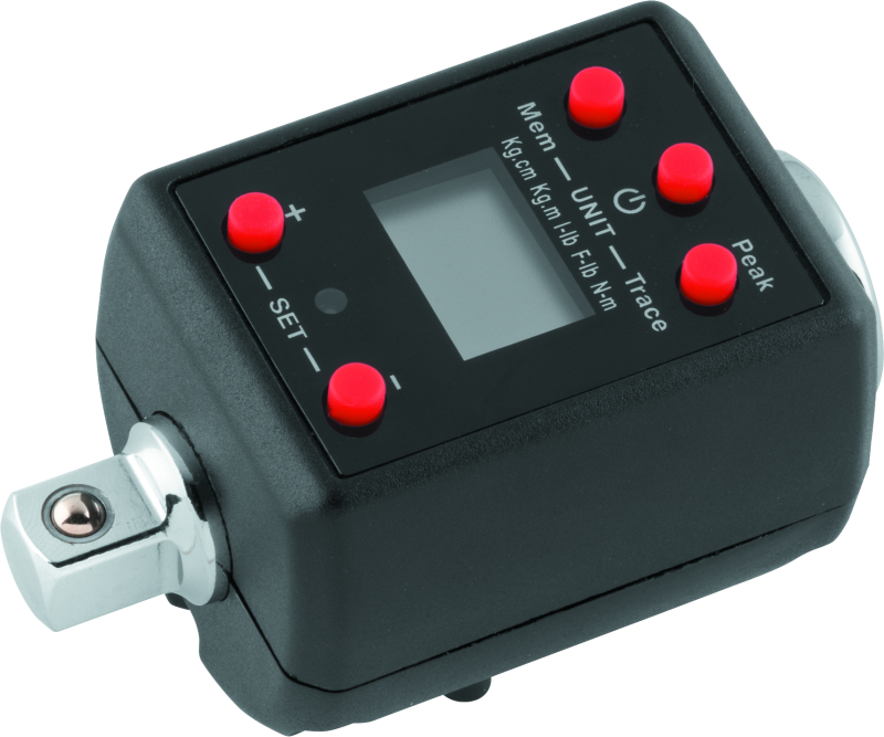 The BikeMaster® Digital Torque Wrench Adaptor has an easy-to- read LCD screen, signal LED light and alarm. It features a built-in memory that stores the last 50 torque value readings as well as Peak and Track modes to log highest torque achieved. The automatic shut-off extends the life of the battery. Complete with a durable protective carrying case, its compact design takes up less room than conventional torque wrenches.