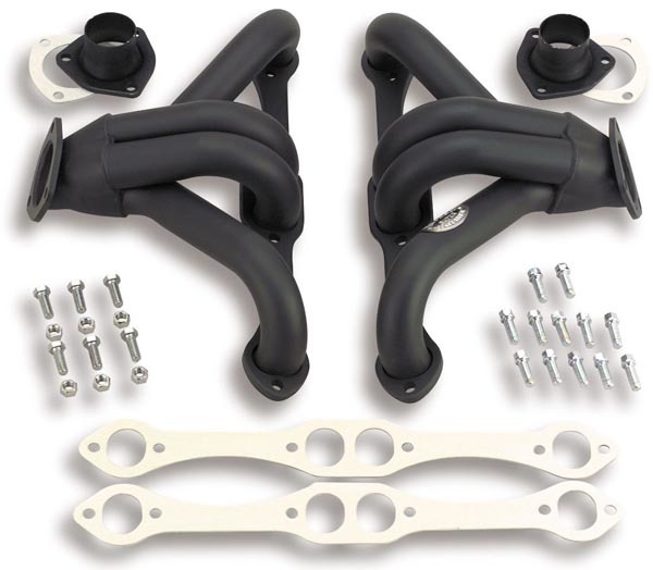 Product Description Headers - Super Competition - Block Hugger - 1.625 in Primary - 2.5 in Collector - Gaskets / Hardware Included - Steel - Black Paint - Small Block Chevy - Universal - Pair