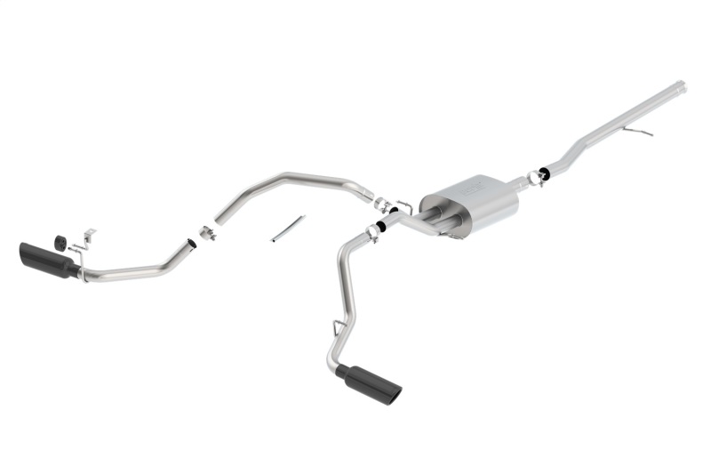 This system features a black chrome finish on T-304 stainless steel tips. Using Borla Stainless Steel Polish p# 21461 is NOT recommended with these black chrome tips. We suggest cleaning the tips with hot water and a microfiber cloth. Borla Cat-Back and Axle-Back exhaust systems feature patented straight-through and multi-core technology designed to unleash hidden horsepower. Increased exhaust velocity adds power, driving excitement, fuel economy, and the distinctive Borla Sound of Power respected by motoring enthusiasts everywhere. Each system is built from premium T-304 stainless steel, superior to T-400 series knockoffs (such as 409), to give you the absolute best in performance and durability. Ultra-smooth mandrel bends ensure maximum flow & power, and precision computer-controlled CNC manufacturing ensures an accurate fit. Best of all, Borla stands behind every system with a Million-Mile Warranty. Just what you'd expect from the world's most experienced (and most winning) exhaust brand.