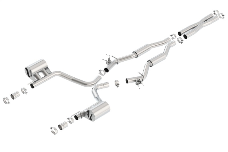 System contains a merge X-Pipe for increased performance and improved sound. This system INCLUDES MDS (multi-displacement system) valve simulators which ELIMINATE the MDS valves. This avoids any warning lights on the dash while providing maximum flow at all times. Tips NOT included. Use factory valance / tips. BORLA(r) Cat-Back(tm) & Axle-Back exhaust systems feature patented straight-through and multi-core technology to unleash hidden horsepower. Increased exhaust velocity adds power, driving excitement, fuel economy, and the distinctive BORLA(r) Sound of Power respected by motoring enthusiasts everywhere. Each system is built from premium T-304 austenitic stainless steel, superior to T-400 series knockoffs (such as 409), to give you the absolute best in performance and durability. Ultra-smooth mandrel bends ensure maximum flow & power, and precision computer numerical control (CNC) manufacturing ensures an accurate fit. Best of all, BORLA(r) stands behind every system with a Million-Mile Warranty. Just what you'd expect from the world's most experienced (and most winning) exhaust brand.