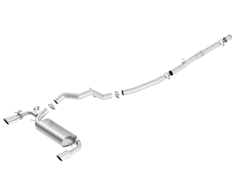 This system is equipped with a "Sound Suppressing Valve" simulator which ELIMINATES the valve. This avoids any warning lights on the dash while providing maximum flow at all times. System also features Boryla's Polyphonic Harmonizer Technology which utilizes patented units that contain pipes of different diameters and lengths to create multiple exhaust notes that harmonize to deliver a clean, rich, full-bodied sound to the Borla mufflers. The mufflers then enhance this sound to the character and volume appropriate for our Touring, S-Type and ATAK(r) systems. This system features bright chrome on T-304 stainless steel tips. Borla Cat-Back & Axle-Back exhaust systems feature patented straight-through and multi-core technology to unleash hidden horsepower. Increased exhaust velocity adds power, driving excitement, fuel economy, and the distinctive Borla Sound of Power respected by motoring enthusiasts everywhere. Each system is built from premium T-304 austenitic stainless steel, superior to T-400 series knockoffs (such as 409), to give you the absolute best in performance and durability. Ultra-smooth mandrel bends ensure maximum flow & power, and precision computer-controlled CNC manufacturing ensures an accurate fit. Best of all, Borla stands behind every system with a Million-Mile Warranty. Just what you'd expect from the world's most experienced (and most winning) exhaust brand.