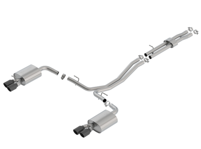 This system features a black chrome finish on T-304 stainless steel tips. Using Borla Stainless Steel Polish p# 21461 is NOT recommended with these black chrome tips. We suggest cleaning the tips with hot water and a microfiber cloth. Borla Cat-Back Axle-Back exhaust systems feature patented straight-through and multi-core technology designed to unleash hidden horsepower. Increased exhaust velocity adds power, driving excitement, fuel economy, and the distinctive Borla Sound of Power respected by motoring enthusiasts everywhere. Each system is built from premium T-304 stainless steel, superior to T-400 series knockoffs (such as 409), to give you the absolute best in performance and durability. Ultra-smooth mandrel bends ensure maximum flow & power, and precision computer-controlled CNC manufacturing ensures an accurate fit. Best of all, Borla stands behind every system with a Million-Mile Warranty. Just what you'd expect from the world's most experienced (and most winning) exhaust brand.