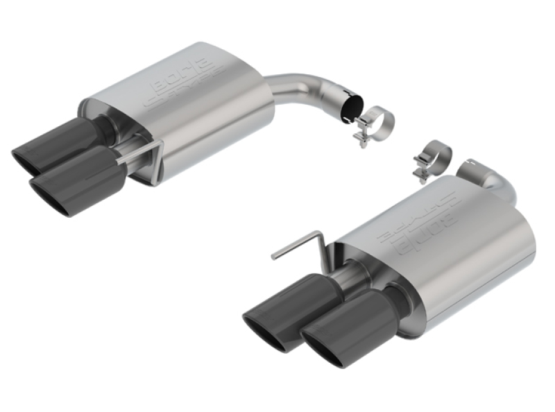 BORLA(r) Axle-Back exhaust system 11953BC is designed to fit the 5.0L Mustang GT that is NOT equipped with Active Valve Performance. It features dual black chrome on T-304 stainless steel tips and the "S-Type" sound. Using BORLA(r) Stainless Steel Polish p#21461 is NOT recommend with these black chrome tips. We suggest cleaning the tips with hot water and a microfiber cloth. It fits both the coupe and convertible models. The straight-through and patented multi-core technology is designed to unleash hidden horsepower. Increased exhaust velocity adds power, driving excitement, fuel economy, and the distinctive BORLA(r) Sound of Power respected by motoring enthusiasts everywhere. Each system is built from premium T-304 stainless steel, superior to T-400 series knockoffs (such as 409), to give you the absolute best in performance and durability. Ultra-smooth mandrel bends ensure maximum flow& power, and precision computer-controlled CNC manufacturing ensures an accurate fit. Best of all, BORLA(r) stands behind every system with a Million-Mile Warranty. Just what you'd expect from the world's most experienced (and most winning) exhaust brand.