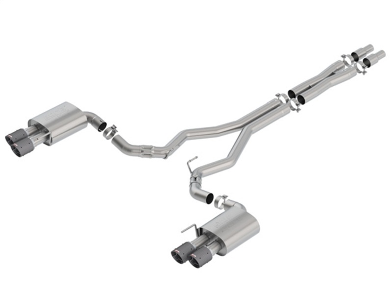 WITHOUT Active Valve Exhaust. NOT recommended for use on Convertibles. 3" diameter system. System contains a merge X-Pipe for increased performance and improved sound. System features BORLA(r)'S Polyphonic Harmonizer Technology which utilizes patented units that contain pipes of different diameters and lengths to create multiple exhaust notes that harmonize to deliver a clean, rich, full-bodied sound to the BORLA(r) mufflers. The mufflers then enhance this sound to the character and volume appropriate for our Touring, S-Type and ATAK(r) systems. System also features carbon fiber tips with bright centers. BORLA(r) Cat-Back(tm) and Axle-Back multi-core technology is designed to unleash hidden horsepower. Increased exhaust velocity adds power, driving excitement, fuel economy, and the distinctive BORLA(r) Sound of Power respected by motoring enthusiasts everywhere. Each system is built from premium T-304 stainless steel, superior to T-400 series knockoffs (such as 409), to give you the absolute best in performance and durability. Ultra-smooth mandrel bends ensure maximum flow& power, and precision computer-controlled CNC manufacturing ensures an accurate fit. Best of all, BORLA(r) stands behind every system with a Million-Mile Warranty. Just what you'd expect from the world's most experienced (and most winning) exhaust brand.