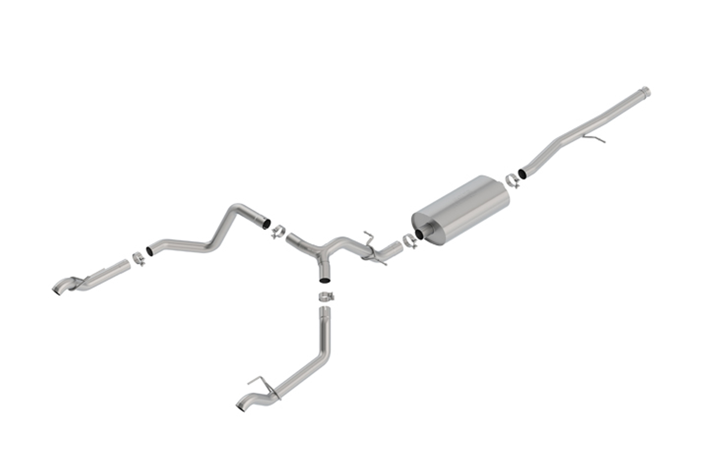 Exhaust System - Touring - Cat-Back - 3 in Diameter - Dual Rear Exit - Factory Tips - Stainless - Natural - GM LS-Series - GM Fullsize Truck 2019-21 - Kit