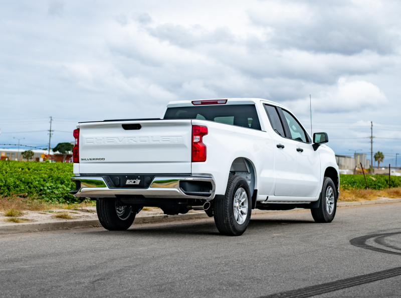 Factory Single Side Exit vehicles ONLY. Add Adapter 60708 for Crew Cab with Standard Bed (6' 7") 157" Wheelbase vehicles. The 140793 Cat-Back(tm) system by BORLA(r) is a side exit system featuring the mellow Touring sound level and a 4" bright chrome on T-304 stainless steel tip. A black chrome on T-304 stainless steel tip is also available. BORLA(r) Cat-Back(tm) and Axle-Back exhaust systems feature patented straight-through and multi-core technology designed to unleash hidden horsepower. Increased exhaust velocity adds power, driving excitement, fuel economy, and the distinctive BORLA(r) Sound of Power respected by motoring enthusiasts everywhere. Each system is built from premium, high-quality T-304 austenitic stainless steel, superior to T-400 to give you the absolute best in performance and durability. Ultra-smooth mandrel bends ensure maximum flow & power, and precision CNC manufacturing ensures an accurate fit. You can count on BORLA(r) to provide durability, performance, sound, and a Million-Mile Warranty.