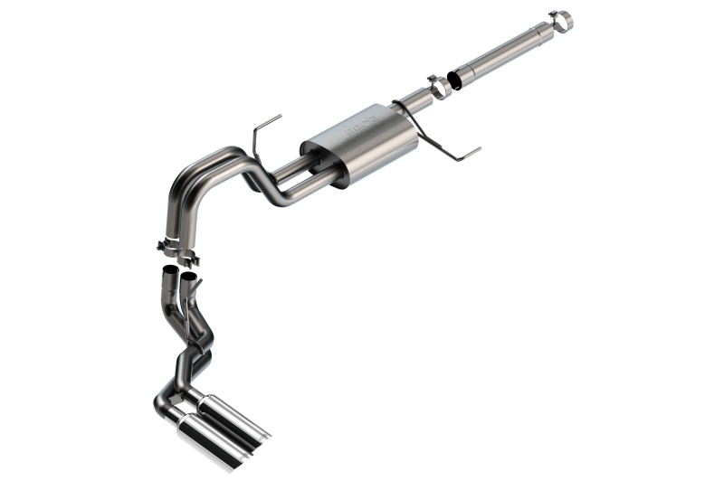 This BORLA Cat-Back system was specifically designed to enhance the power and sound of the Ford F-150 equipped with the 3.5L PowerBoost engine. It includes 4" bright chromed T-304 stainless steel tips and a dual side exit configuration. Add Adapter 60556 For Crew Cab With Standard Bed (6' 7") 157.2" Wheelbase vehicles. The entire system is made of T-304 stainless steel and utilizes computer numerical control (CNC) manufacturing techniques that ensure an accurate fit. This system features the S-Type sound that gives you an aggressive sound with no drone. It is also available with black chromed T-304 stainless steel tips. All this is backed by our unsurpassed Million Mile Warranty.System Features: Cat-Back System Dual Side Exit 4" Bright Chrome On T-304 Stainless Steel Tips S-Type Sound Level T-304 Stainless Steel Construction Bolt-On Installation Million Mile Warranty
