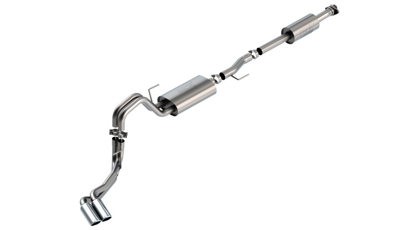 The BORLA Cat-Back system 140881 was specifically designed to enhance the power and sound of the Ford F-150 equipped with 3.3L engine. It includes bright chromed T-304 stainless steel tips and a dual side exit configuration. The entire system is made of T-304 stainless steel and utilizes computer numerical control (CNC) manufacturing techniques that ensure an accurate fit. This system features the ATAK sound that gives you our most aggressive sound level with no drone. It is also available with black chromed tips (part number 140881BC). There are also systems available for the 3.3L F-150 that offer different options for sound level, tip finish and tip exits. Add adapter 60556 for Crew Cab with Standard Bed (6' 7") 157.2" Wheelbase vehicles. Add adapter 60564 for Extended Cab Long Bed (8' 2") 164.1" Wheelbase vehicles. All this is backed by our unsurpassed Million Mile Warranty.System Features: Cat-Back System Dual Side Exit Bright Chrome On T-304 Stainless Steel Tips ATAK Sound Level T-304 Stainless Steel Construction Bolt-On Installation Million Mile Warranty
