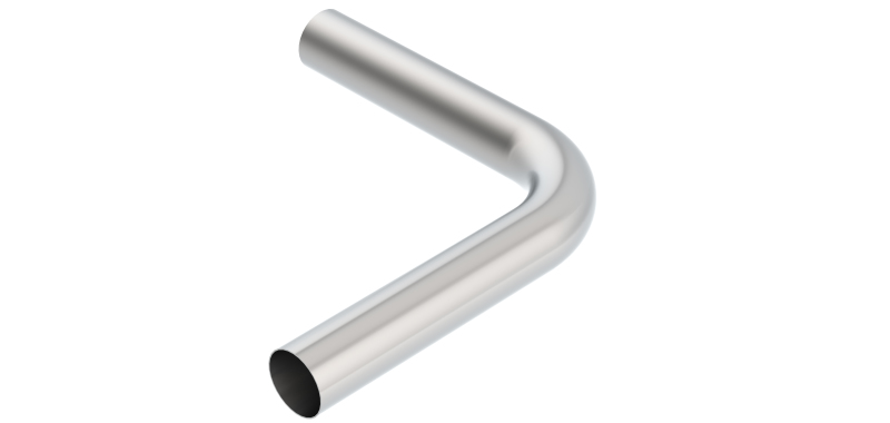 90-degree elbow with 4" bend radius and 10.75" legs. Heavy 18-gauge high-quality T-304 austenitic stainless steel. Mandrel bent for consistent diameter throughout the bend area for maximum flow. Natural mill finish can be brushed or polished prior to installation. Size is outside diameter.