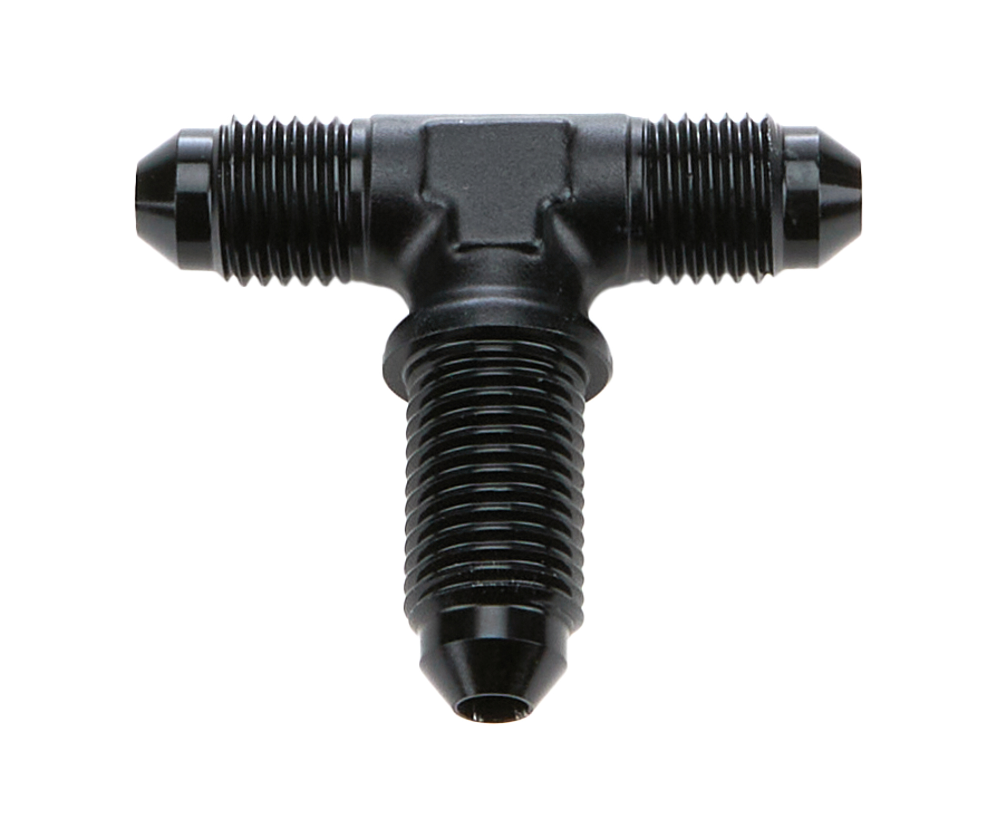 Product Description Fitting - Bulkhead Tee - 4 AN Male x 4 AN Male x 4 AN Male Bulkhead - Aluminum - Black Anodized - Each