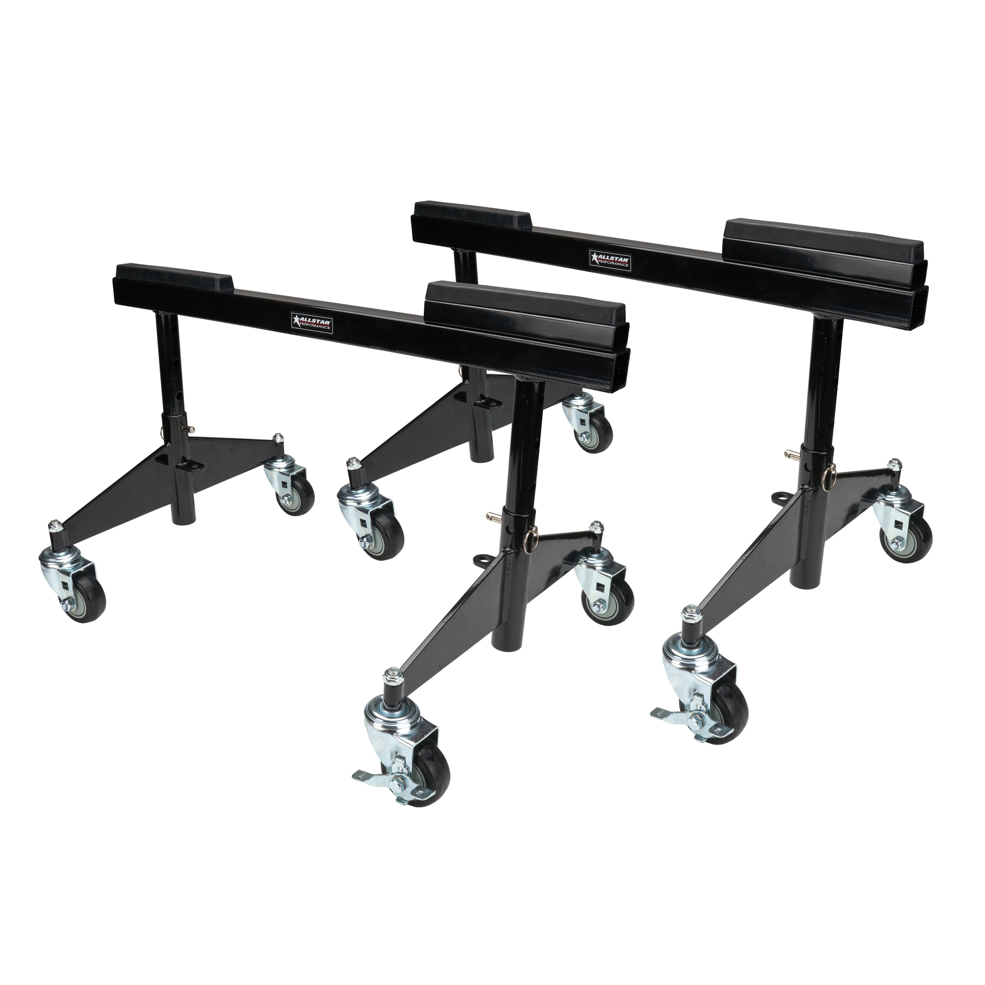 Product Description Chassis Dollies - 30 in Wide - 13-19 in Height Adjustable - Collapsible - Removable 1 in Block Included - Up to 2000 lbs - Steel - Black Powder Coat - Pair