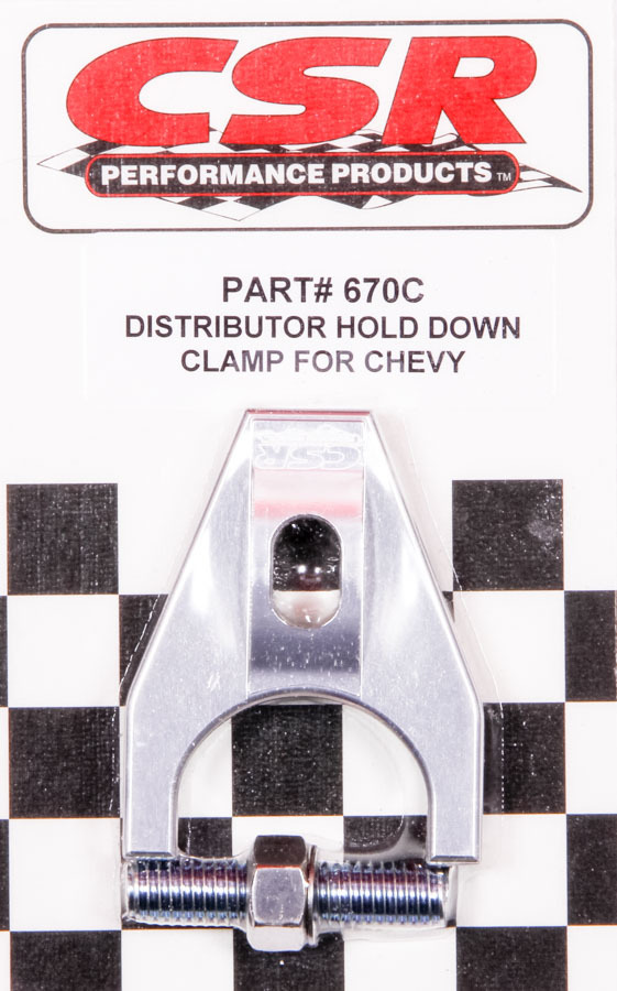 Product Description Distributor Hold Down - Stud Mounted - Hardware Included - Aluminum - Clear Anodized - Chevy V8 - Each