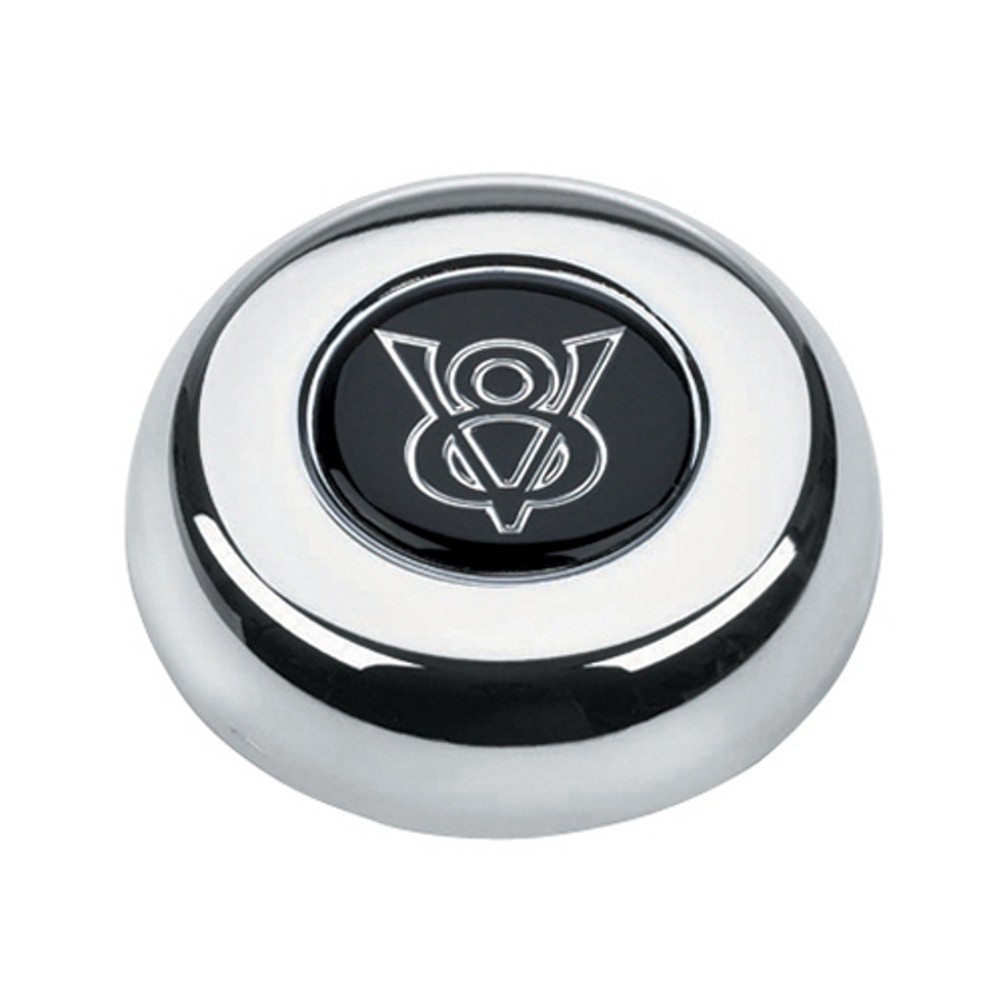 Product Description Horn Button - Black Ford V8 Logo - Steel - Chrome - Grant Classic / Challenger Series Wheels - Each