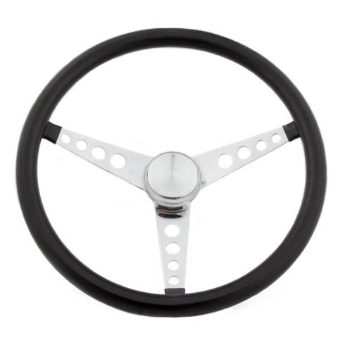 Product Description Steering Wheel - Classic - 15 in Diameter - 1 in Dish - 3-Spoke - Black Vinyl Grip - Steel - Chrome - Each