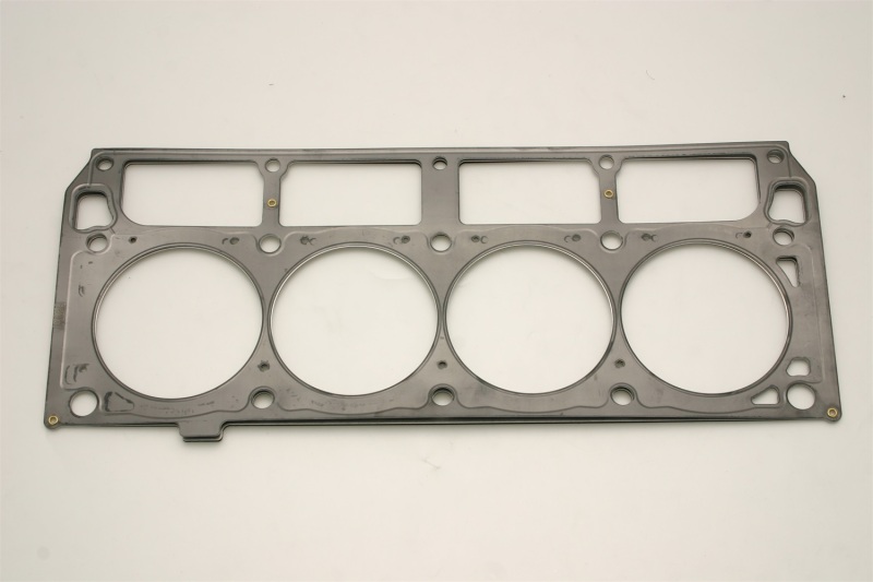 Comprised of multiple embossed layers of stainless steel with the outer layers utilizing a Viton rubber coating. Compressed operating thickness is 0.027". Cometic MLS (Multi-Layer Steel) Head Gaskets provide maximum sealing performance for todays high output engines and require no sealants. MLS gaskets are ideal for both aluminum heads to aluminum blocks and aluminum heads to cast iron blocks. They can withstand the shearing force created by the two materials. MLS gaskets have increased strength because they are comprised of multiple layers of stainless steel; which also creates the ability to rebound and resist corrosion. The outer layers are embossed and coated on both sides with Viton (a flour elastomer rubber based material that is heat resistant to 250 C/ 482 F). Viton is designed to meet the demands of a variety of harsh sealing environments, load conditions, and surface finishes. The center or shim layer is uncoated stainless steel, which can be varied to accommodate multiple thickness requirements.