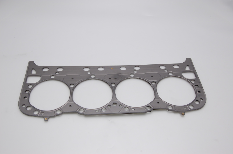 Comprised of multiple embossed layers of stainless steel with the outer layers utilizing a Viton rubber coating. Compressed operating thickness is 0.045". Cometic MLS (Multi-Layer Steel) Head Gaskets provide maximum sealing performance for todays high output engines and require no sealants. MLS gaskets are ideal for both aluminum heads to aluminum blocks and aluminum heads to cast iron blocks. They can withstand the shearing force created by the two materials. MLS gaskets have increased strength because they are comprised of multiple layers of stainless steel; which also creates the ability to rebound and resist corrosion. The outer layers are embossed and coated on both sides with Viton (a flour elastomer rubber based material that is heat resistant to 250 C/ 482 F). Viton is designed to meet the demands of a variety of harsh sealing environments, load conditions, and surface finishes. The center or shim layer is uncoated stainless steel, which can be varied to accommodate multiple thickness requirements.