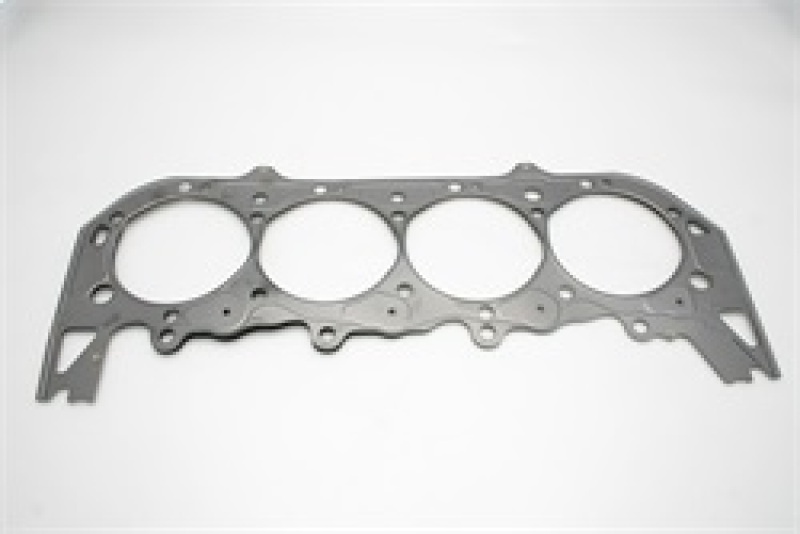 Comprised of multiple embossed layers of stainless steel with the outer layers utilizing a Viton rubber coating. Compressed thickness is 0.075". 4 Bolts in Valley. Cometic MLS (Multi-Layer Steel) Head Gaskets provide maximum sealing performance for todays high output engines and require no sealants. MLS gaskets are ideal for both aluminum heads to aluminum blocks and aluminum heads to cast iron blocks. They can withstand the shearing force created by the two materials. MLS gaskets have increased strength because they are comprised of multiple layers of stainless steel; which also creates the ability to rebound and resist corrosion. The outer layers are embossed and coated on both sides with Viton (a flour elastomer rubber based material that is heat resistant to 250 C/ 482 F). Viton is designed to meet the demands of a variety of harsh sealing environments, load conditions, and surface finishes. The center or shim layer is uncoated stainless steel, which can be varied to accommodate multiple thickness requirements.