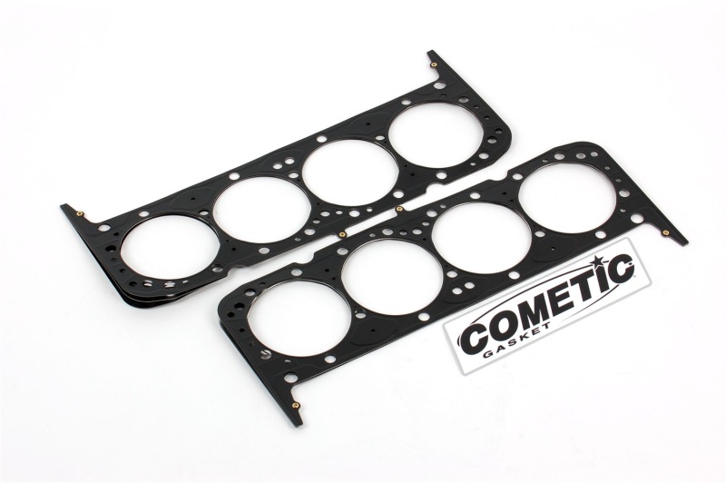 Comprised of multiple embossed layers of stainless steel with the outer layers utilizing a Viton rubber coating. Compressed operating thickness is 0.040". FWD. No Add'l Oil Holes. Cometic MLS (Multi-Layer Steel) Head Gaskets provide maximum sealing performance for todays high output engines and require no sealants. MLS gaskets are ideal for both aluminum heads to aluminum blocks and aluminum heads to cast iron blocks. They can withstand the shearing force created by the two materials. MLS gaskets have increased strength because they are comprised of multiple layers of stainless steel; which also creates the ability to rebound and resist corrosion. The outer layers are embossed and coated on both sides with Viton (a flour elastomer rubber based material that is heat resistant to 250 C/ 482 F). Viton is designed to meet the demands of a variety of harsh sealing environments, load conditions, and surface finishes. The center or shim layer is uncoated stainless steel, which can be varied to accommodate multiple thickness requirements.