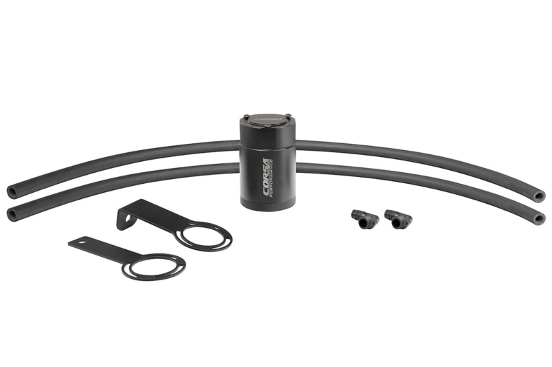 CORSA Performance's oil catch cans are the latest in a line of performance parts designed to maximize vehicle performance and longevity. Made from 6061 aluminum and featuring a multi-stage oil separation system, CORSA Performance oil catch cans work to eliminate blow-by of gas, water, oil vapors and particulates from the airpath. By reducing the impacts of blow-by, oil catch cans prevent damage to sensitive intake components and helps reduce carbon build-up on valves that over time reduce engine performance. Each vehicle specific oil catch can has been designed with OEM style quick disconnect fittings, premium automotive-grade hoses and upgraded components to ensure your vehicle runs at peak performance. Through careful design CORSA engineers have mounted each oil catch can in an easily accessible yet safe location allowing for ease of serviceability.