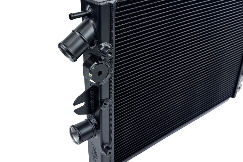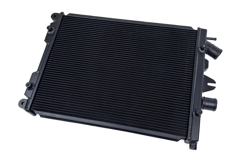 This radiator features a 2-Row core with CSF's exclusive B-Tube Technology: Unlike a regular oval-shaped "O" type radiator tube, CSF uses a specially engineered tube in the shape of a "B". These "B-tubes" are carefully formed and then brazed over the seam to seal. CSF is able to use thinner and lighter aluminum material (with better cooling efficiency) because this design is actually stronger than normal "O" shape tubes that are welded. The design (inlet in the middle of the tube that is seam brazed) increases the heat transfer surface area of the tubes by approximately 15% over regular tubes - producing the efficiency of two smaller tubes vs. one large tube within the same space criteria. With "B-tubes" you are able to get "dual liquid laminar flow". CSF also uses ultra efficient multi louvered fins that are carefully and precisely aligned to maximize airflow through each radiator core. Fin specifications are carefully measured and calculated for each application, and tested for maximum heat rejection efficiency in our wind-tunnel lab.